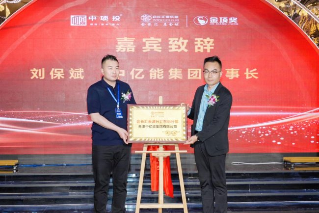 随后,会长汇天津东丽分部、会长汇天津津南分部相继成立,揭牌嘉宾为:会长汇俱乐部会长赵浩博先生,中亿能集团董事长刘保斌先生;天津市江西省赣州商会会长,道盛和同供应链管理董事长曾诚先生。中亿能集团董事长刘保斌接受牌匾并发言,天津市江西赣州商会曾诚会长发表主题演讲,聚焦区域联动与产业协作,共绘发展蓝图。